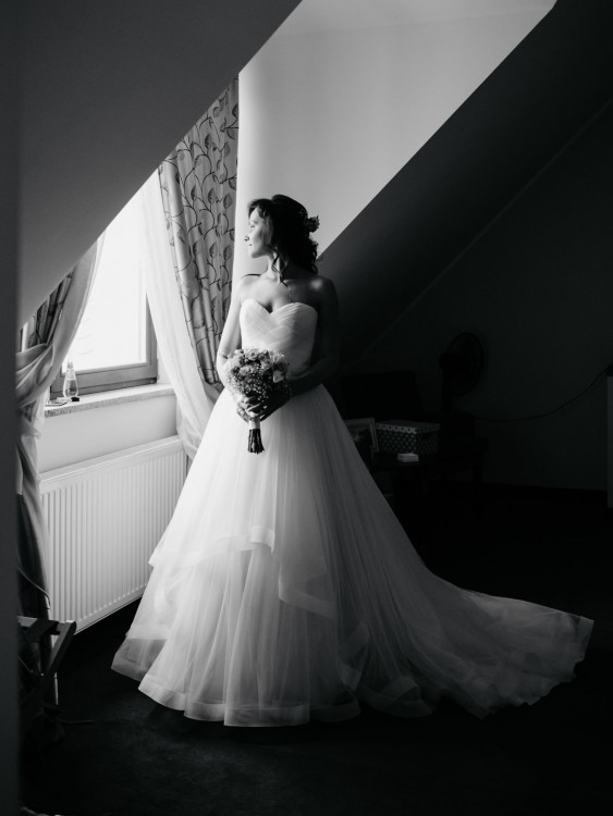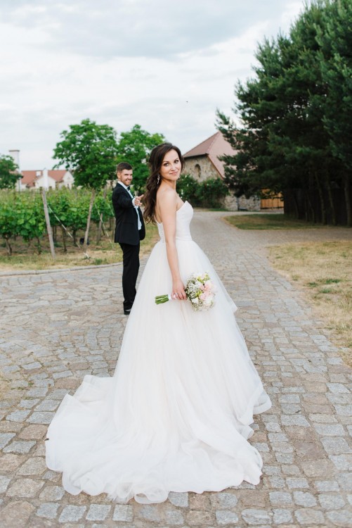 Suknia z efektownym trenem z możliwością podpięcia.