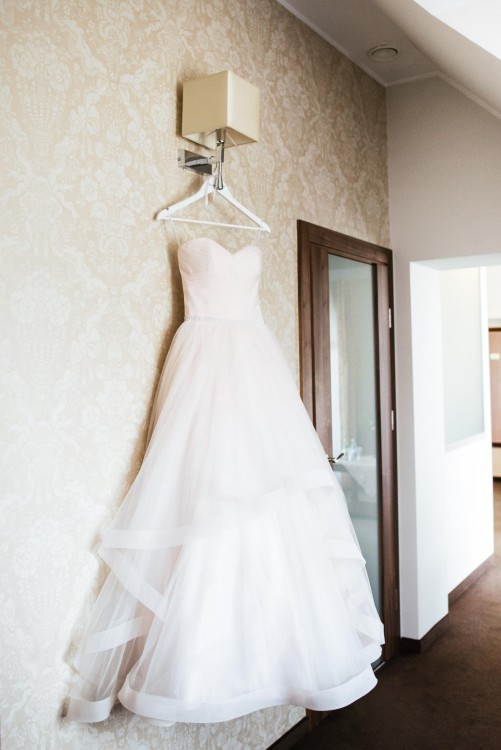 Do sukni doszyty został także delikatny pasek na wysokości talii, który można z łatwością usunąć/wymienić.