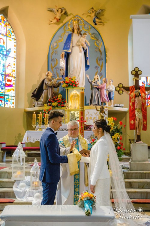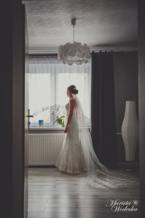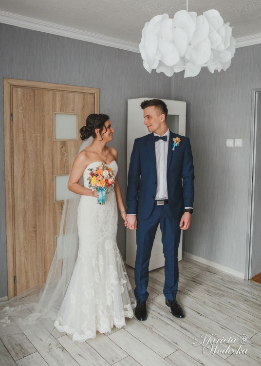 Sprzedam suknię ślubną Famosa, jestem drugą właścicielką-kupiłam ją za 1300zł bez żadnych dodatków. Kolor sukni ivory/delikatne ecru. Rozmiar jaki noszę to S, suknia z metki 38-jednak byla delikatnie zwężana. Suknia na wzrost 162+8/10cm obcas. Do sukni dołączam (dokupione osobno) pasek pięknie zdobiony, Welon długi 2m z aplikacjami z koronki tej samej z której uszyta jest suknia-uzyty w kosciele, welon krótki -mi posłużył tylko do rzucania, bolerko/żakiet szyty przez krawcową na rozmiar S rękaw 3/4-nie używany przeze mnie oraz bolerko tiulowo-koronkowe z salonu princessa w Rybniku. Suknia jest po praniu. Cena do lekkiej negocjacji. Jeśli nie odbieram telefonu proszę o wiadomośc sms.