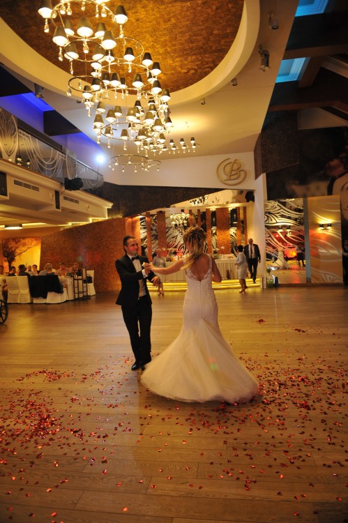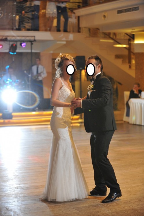 Posiada podpinany tren, przez co można swobodnie tańczyć.