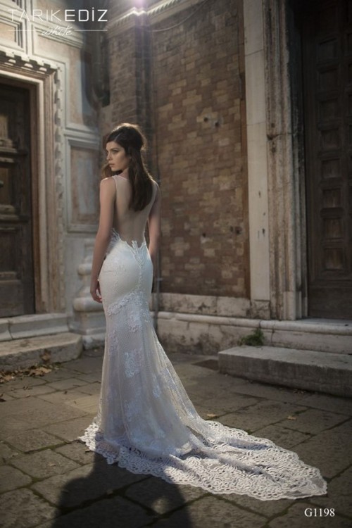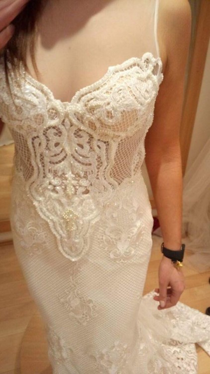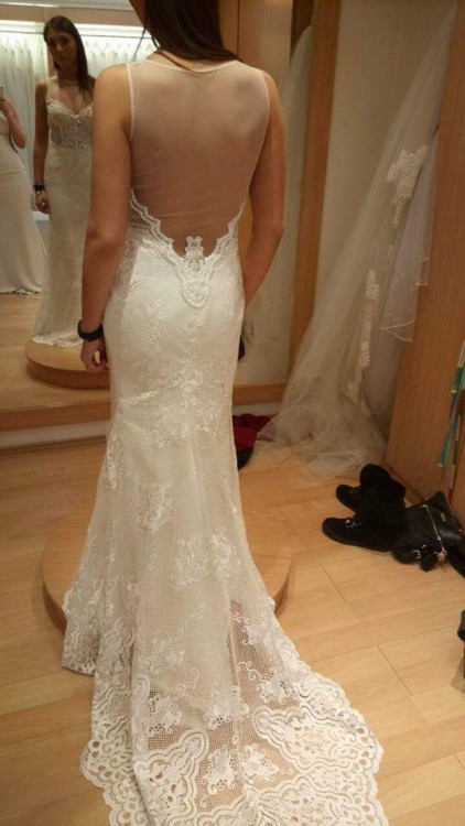 Piękna, lekka, dopasowana, delikatna, podkreślająca figurę, klasyczna a zarazem seksowna suknia ślubna. Dodatkowego uroku dodaje piękny długi tren i głęboko wyciete plecy