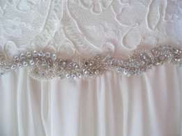Elastyczny pas ukryty po wewnętrznej stronie sukni (na wysokości talii) oraz usztywniony gorset powodują, że suknia wdzięcznie dopasowuje się do figury. Suknia powinna być dobra na panie noszące rozmiar: duże 34, 36, 38, małe 40.