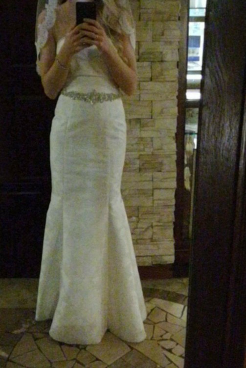 Sprzedam suknie ślubna hiszpańskiej projektantki wykonanej z żakardu zdobionego kwiatami.suknia posiada dopinany tren.