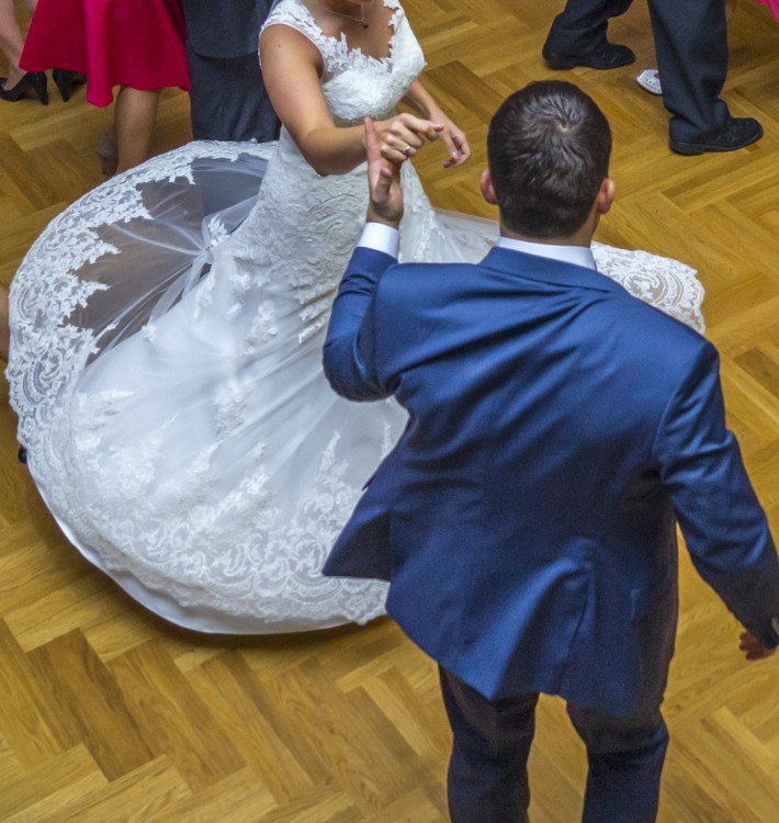 Suknia pięknie układa się podczas tańca.