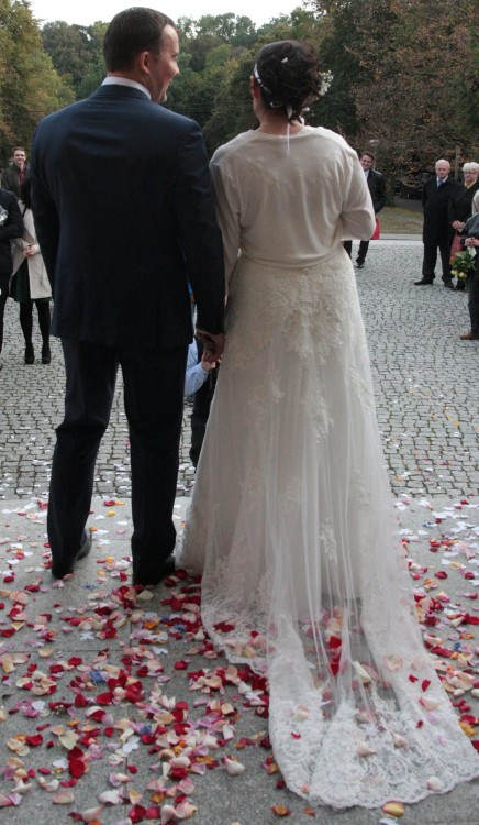 Sukienka niepowtarzalna, była przerabiana w salonie według mojego pomysłu.