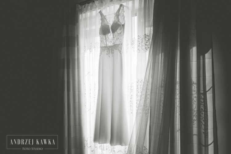 Suknia z wyjątkowo pięknym dekoltem oraz plecami w literkę V. Nie krępuje ruchów, lekka i wygodna w tańcu. W razie zainteresowania na sprzedaż również welon 3m oraz biżuteria.