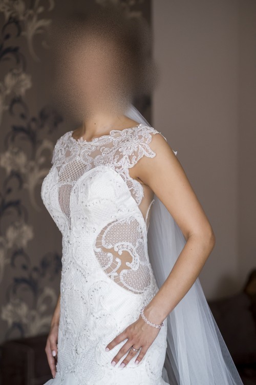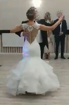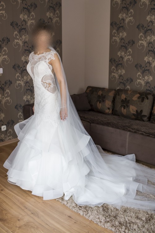 Sprzedam suknię ślubną firmy Vanilla Sposa, zakupioną w salonie za 3600zł. Jest to model 1542, w kolorze Ivory. Suknia była szyta na miarę: biust - 88, pas - 71, wzrost - 172 (+ niewielki 3 cm obcas), istnieje możliwość skrócenia oraz zwężenia sukni. W suknię zostały wszyte miseczki, posiada ona również wszytą już halkę wraz z kołem, jest możliwość wyjęcia koła, co nie zmieni wyglądu sukni. Atutem sukni jest długi podpinany tren, który po podpięciu łączy się z falbanami tak, że jest niewidoczny - nie tworzy się brzydki efekt odstającego materiału. Do sukni dołączam długi, 2m welon. Suknia jest już po czyszczeniu oraz delikatnych poprawkach u krawcowej. Cena do negocjacji.