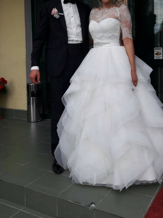 Sprzedam piękną suknię ślubną Vanilla Sposa 2017 model Indigo 1537!!! Rozmiar 38, kolor ivory. Suknia na wzrost 166 plus 7 cm obcas. Do sukni dołączam również bolerko wykonane z delikatnej koronki (roz. 36-38). Cena salonowa (suknia4000 zł , bolerko500 zł)
