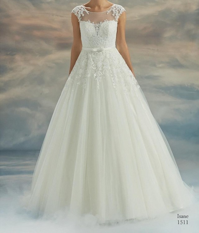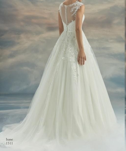 Mam do sprzedania romantyczną sukienkę ślubną zakupioną w prestiżowym salonie Sukien Ślubnych. Model: ISANE - 1511; Kolekcja: Vanilla Sposa; Suknia jest w kolorze ivory (biała perła). Ma pięknie koronkowe wykończenia na ramionach, plecach i gorsecie.
