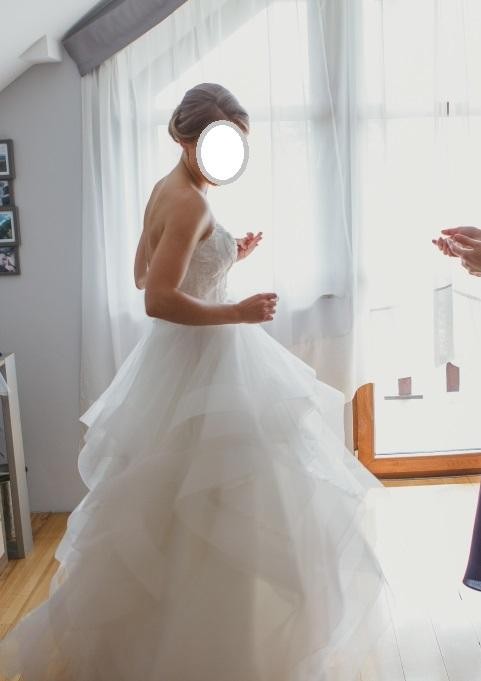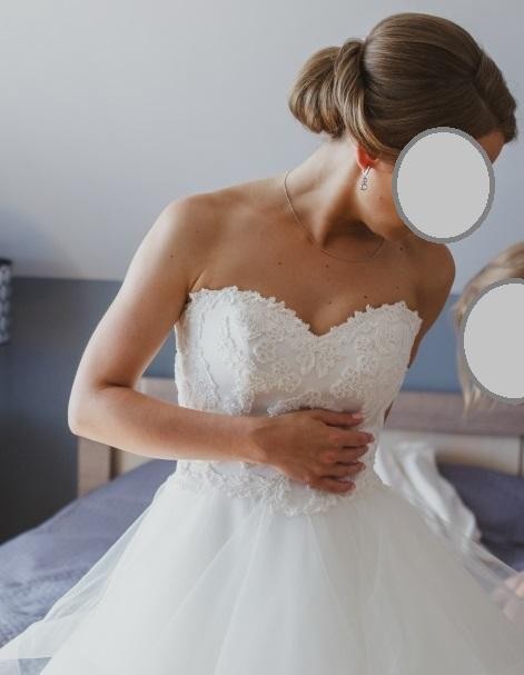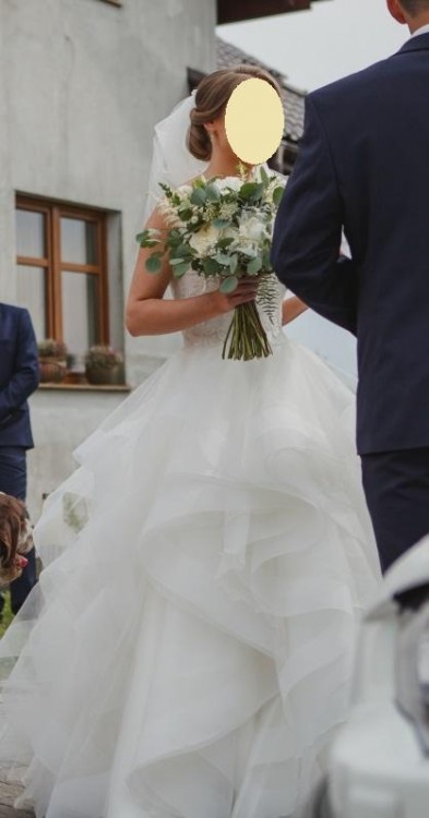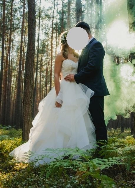 Suknia była założona 2 razy - w dniu ślubu (lipiec 2017) oraz w czasie sesji poślubnej (sierpień 2017). Jestem jej pierwszą właścicielką. Zakupiona została w salonie w Lublinie - umowa zakupu do wglądu.