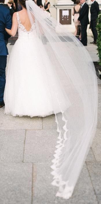Dla Pani kupującej suknię dołączam welon w cenie 200 zł (oryginalna cena 700 zł). Długi, obszyty koronką, po prostu piękny! Widoczny jest na jednym ze zdjęć.