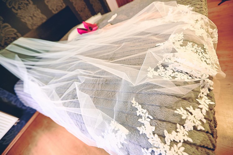 Do sukni dorzucam dwa welony : długi, który jest obszyty tą samą aplikacją co suknia (koszt z salonu 800 zł) + krótki( 200zł) . Długi welon został założony tylko do kościoła.