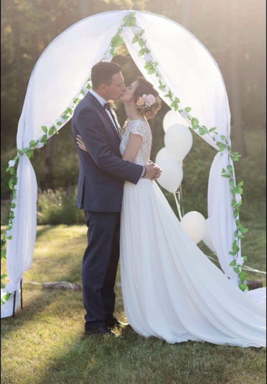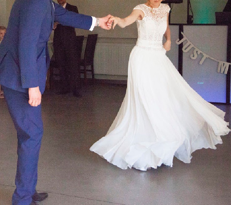 Dół sukni jest z atlasowego podkładu i kolejne warstwy to jedwabny szyfon . Suknia jest bardzo lekka , wygodna , idealnie sprawdza się w tańcu .Czułam się w niej wyjątkowo i jestem pewna , że Ty również będziesz tak się czuła ...jeśli się na nią zdecydujesz :)