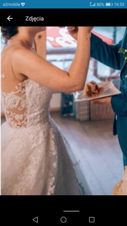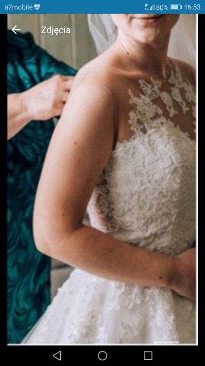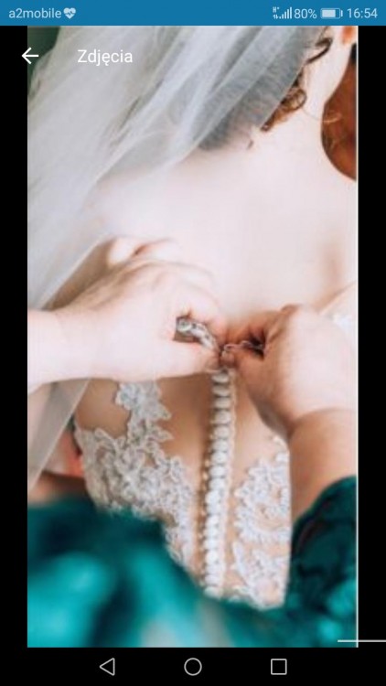 Do sukni ślubnej zostały wszyte originalnie gąbeczki(miseczki), dzięki temu nie ma potrzeby zakładania biustonosza.