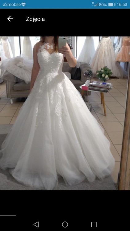 Mam do sprzedania suknie ślubną w kolorze szampana zakupioną w salonie sukni ślubnych Lovely w Kętach.