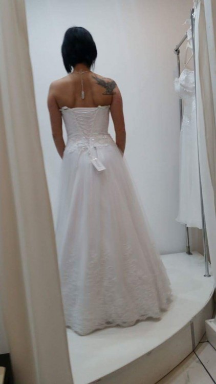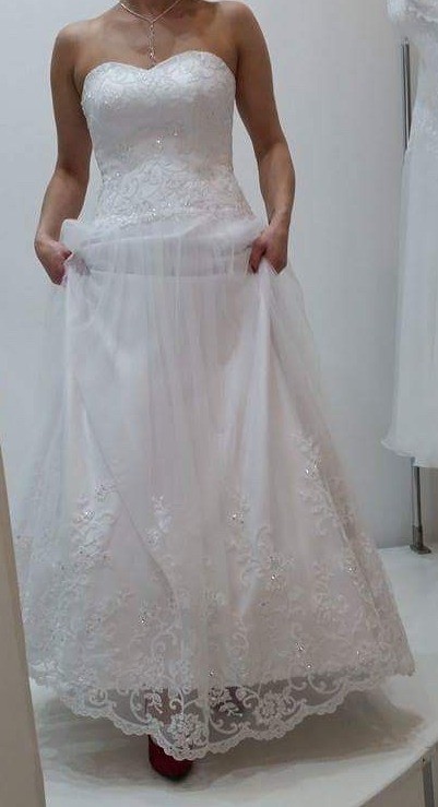 Mam do sprzedania suknię ślubną zakupiona w salonie ślubnym .Suknia w rozmiarze od 36-40 na gorsecie. Gotowa do założenia .Sprzedaje ponieważ zakupiłam ją za wcześnie i szkoda żeby jeszcze tyle czasu wisiała .Ślicznie zdobiony dół jak i gorset. Są też doszyte cieniutkie naramki ,które można założyć lub schować .Polecam