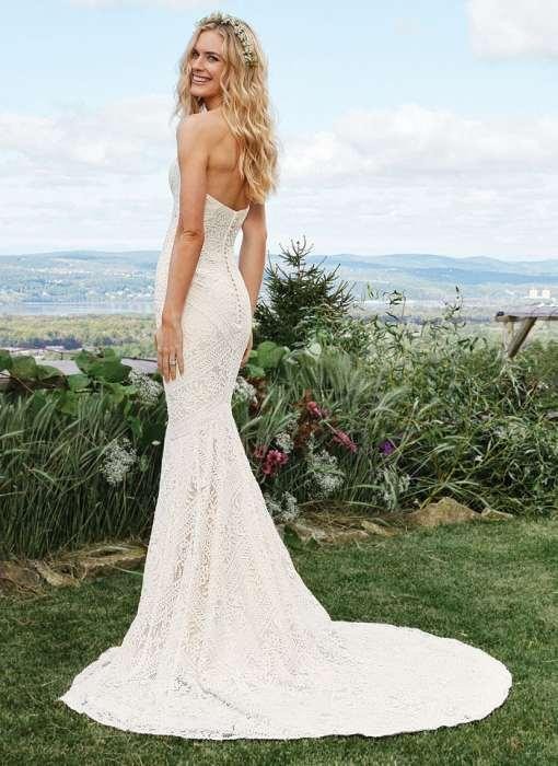 Cudowna „syrenka” uszyta z mięsistej koronki o nietuzinkowym i niepowtarzalnym wzorze. Charakterystyczną cechą tego modelu jest niezwykle modny szew przez środek sukni. Coś dla dziewczyn, które lubią styl boho, niekrzykliwe, niebanalne rozwiązania, do sukni można dodać ozdobę i bedzie ona bardziej efektowna i elegancka. Suknia świetnie układa sie na ciele,nie krępuje ruchów, jest bardzo wygodna i lekka w noszeniu.