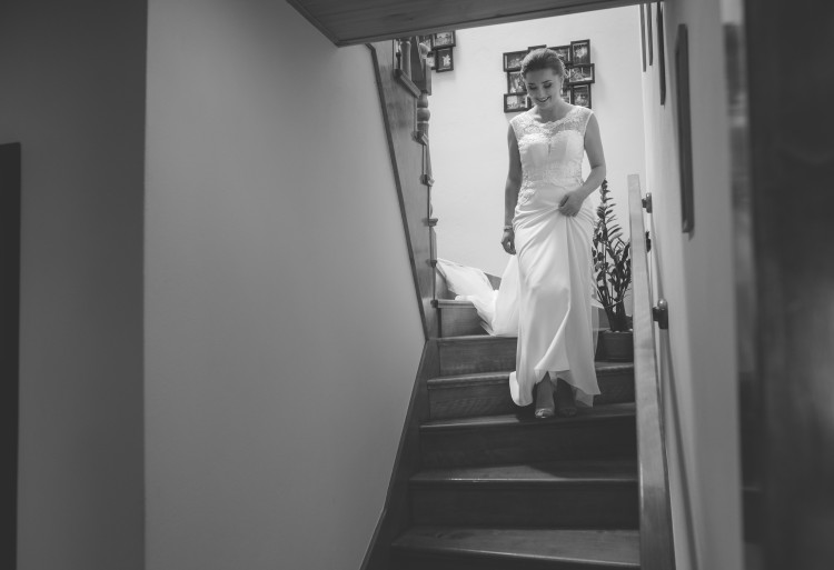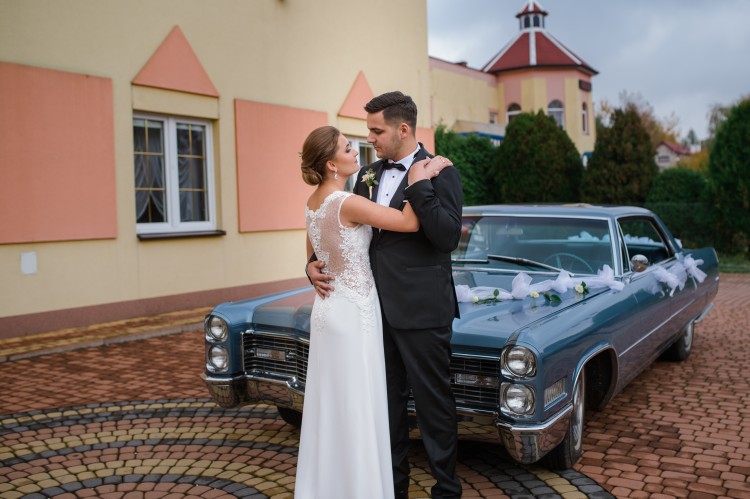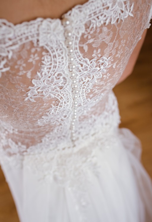 Prześliczna koronkowa suknia ślubna z dopinanym trenem, szyta w salonie Diana Atelier w Rzeszowie.