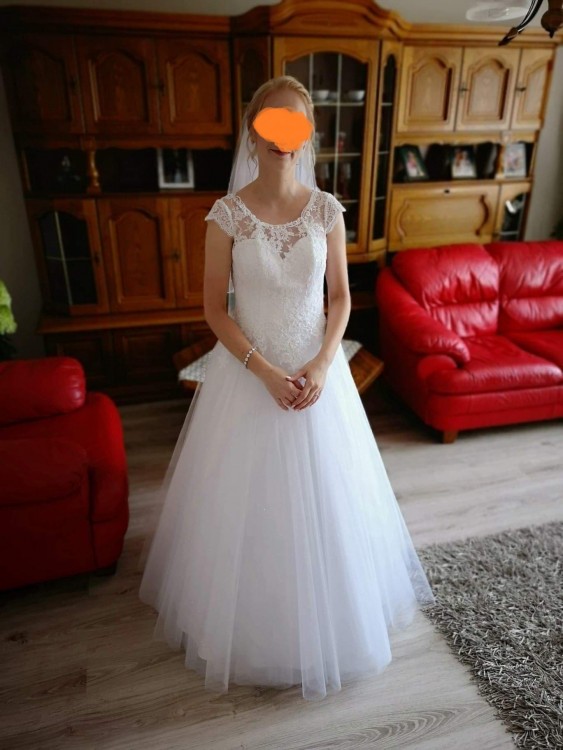 Witam, mam do sprzedania piękną suknię ślubną w kolorze białym o rozmiarze 34 (mam wzrost 165 cm, jestem szczupła, wysokość obcasa 6 cm). Jest to suknia z nowej kolekcji Amore, model – „Mija”, która została uszyta ręcznie w salonie sukien ślubnych Fasson Dorota Wróbel. Do sukni dołączone jest koło usztywniające dół, ale jest możliwość jego ściągnięcia. Do sukni dołączam krótki welon. Suknię kupiłam za 3 500 zł, a sprzedam za 1 500 zł wraz z welonem (do negocjacji). Po więcej informacji bądź zdjęć proszę się ze mną kontaktować przez wiadomość prywatną, bądź telefonicznie: 721042361.