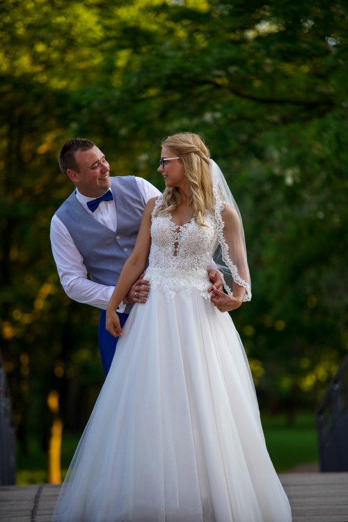 Sprzedam suknię ślubną z welonem. Zakupiona w toruńskim salonie sukien ślubnych Susan Hooward. Wygodna i lekka suknia szyta na rozmiar 36/38, wzrost 165 cm+ obcas. Suknia po czyszczeniu. Cena do negocjacji