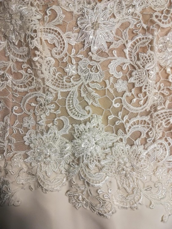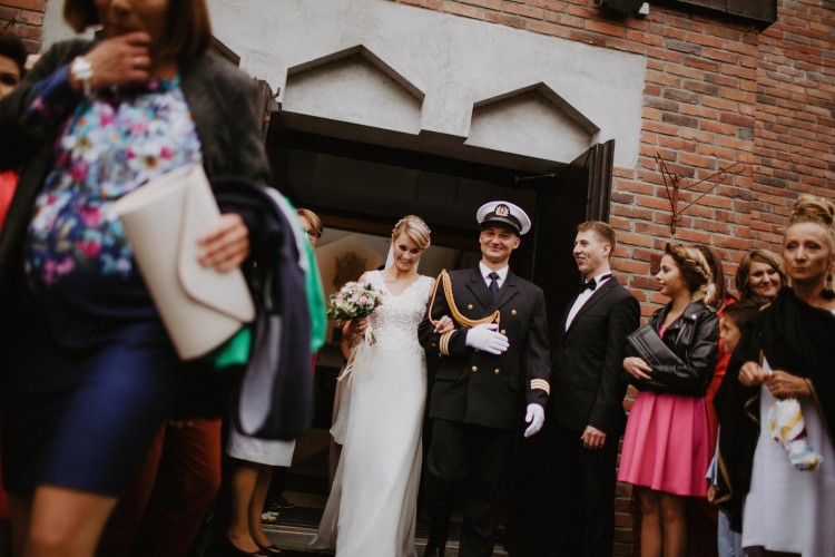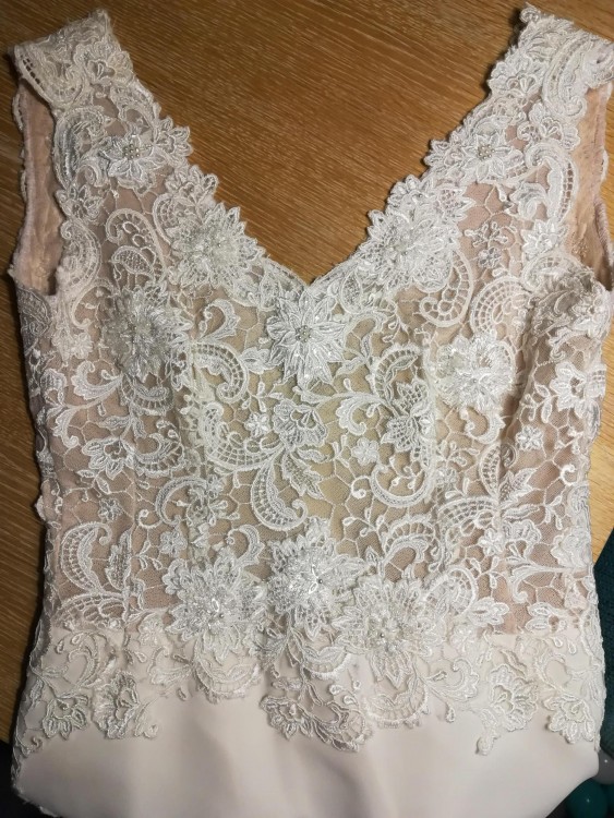Mam na sprzedaż suknię ślubną uszytą według mojego pomysłu w salonie w Gdyni. Sukienka jest według mnie w rozmiarze 36 w kolorze ivory. Mogę przesłać jej dokładne wymiary mierzone na płasko. Uszyta jest na wzrost 169+ 8cm obcas. Materiał to lekki muślin, dodatkowo podszewka. Sukienka ma piękną koronkowa górę wyszywaną ręcznie, dodatkowo ozdobioną koralikami, dodaje to klasy i elegancji sukni, która na pozór jest bardzo prosta. Wycięte plecy to kolejny atut. Dół jest przyległy na biodrach, rozchodzi się poniżej kolan co sprawia,że jest bardzo wygodna i nie krępuje ruchów. Tren sukienki podpinany jest na mały guzik, dzięki temu można przetańczyć w niej całą noc :). Dodatkowo dołączam welon kupiony za 300zł. Sukienka kosztowała 3000 zł, sprzedam za 1600zł. Wywołała zachwyt wśród gości. Jeśli chcesz poczuć się wyjątkowo zapraszam do kontaktu i zakupu:) Więcej zdjęć mogę przesłać dodatkowo.