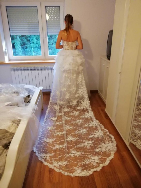 Tak jak wspomniałam suknia zrobiła ogromne wrażenie na wszystkich gościach. Nawet od wujkow i kuzynów słyszałam że nie znają się ale sukienka jest super;) jeśli ktoś chce więcej zdjęć to zapraszam. Cena do uzgodnienia i negocjacji. Mnie wyniosła około 7000tyś. Pozdrawiam