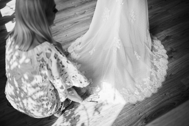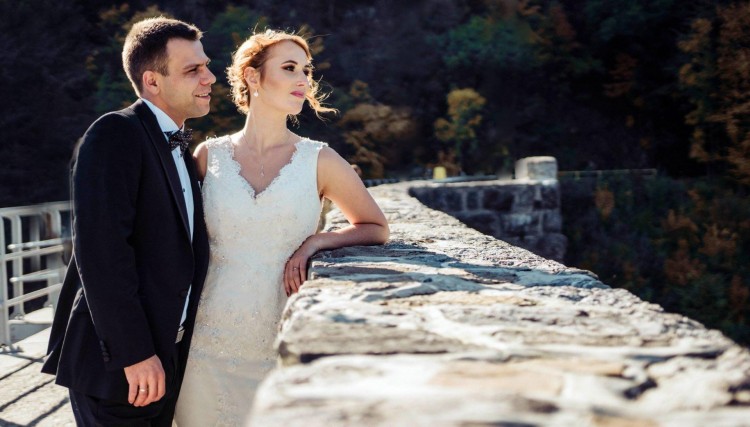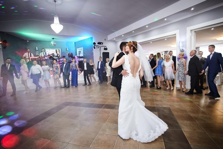 Pięknie zdobiona z podpinanym lekkim trenem, cudownie wygodna .