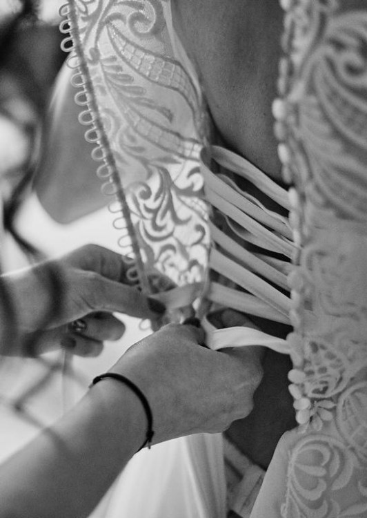 Pasuje na Panie w rozmiarze od 36 do 40. Gorset regulowany. Długość sukni można skracać bez naruszania pięknej koronki. Suknia przygotowana na 170cm plus 6cm obcas.