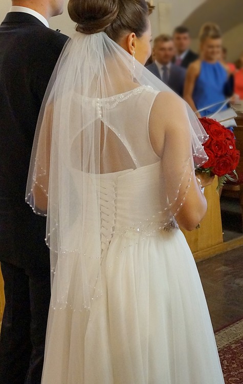 Całość tworzy piękny komplet. Wartość tego kompletu wynosiła 2800 zł. Suknia była kupiona w salonie Mona Lisa w Częstochowie.