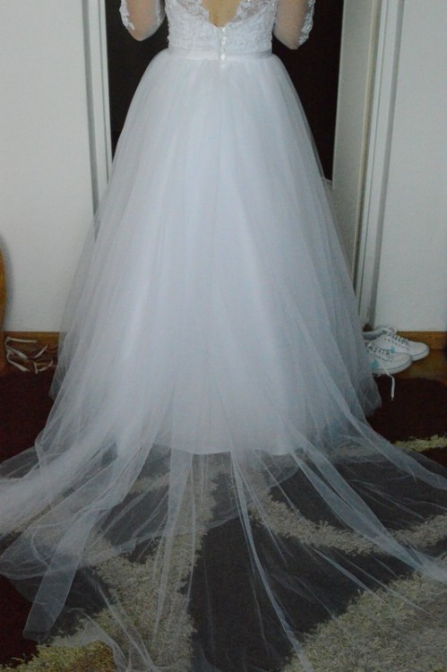 Suknia ślubna XS ,długi rękaw ,tiul lejący z trenem