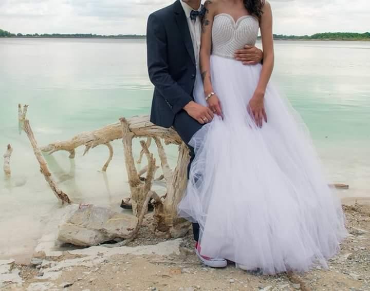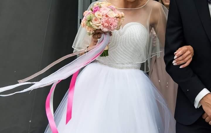 Suknia `Karina`,gorset bogato obsadzony perłami i kamieniami.