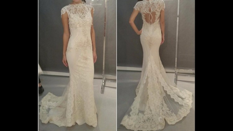 Sukienka o kroju rybki, dopasowana. Składa się z 2 części: halki w kolorze szampańskim oraz przepięknej koronki wyszywanej koralikami.