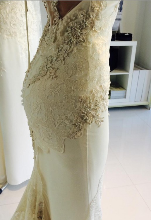 Suknia została nieco zmieniona na moje życzenie - bardziej wycięty dekolt.