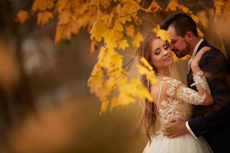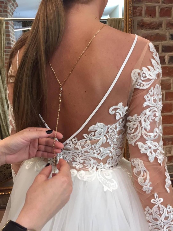 Suknia ślubna z długim rękawem, trenem i welonem 36 S