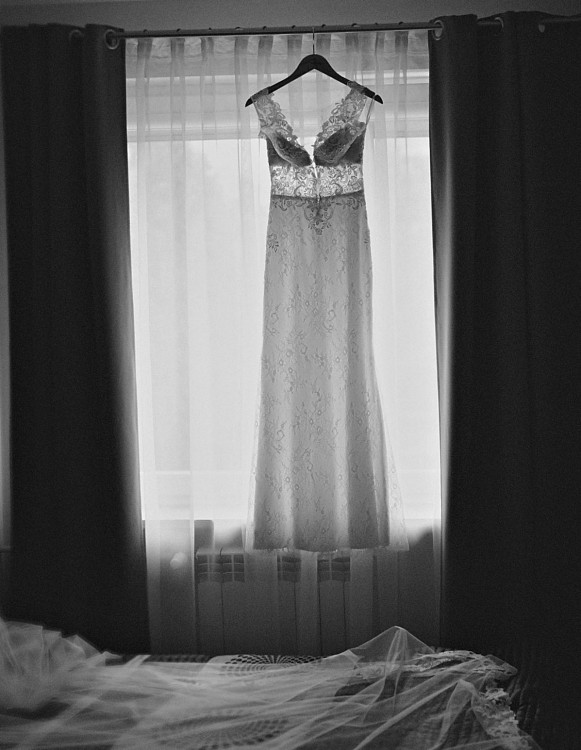 Do sukni dodaję długi welon wykończony koronką.