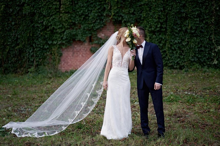 Suknia ślubna z długim welonem - salon Madonna