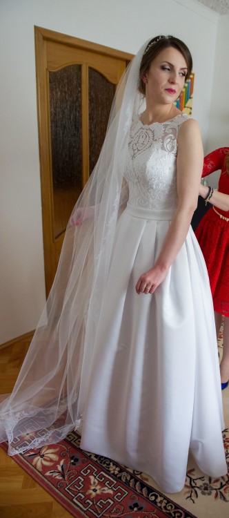 Suknia ślubna z kieszeniami Gabana firmy Annais Bridal z kolekcji By Ola La, zakupiona w salonie sukni ślubnych Carolina w Krakowie.