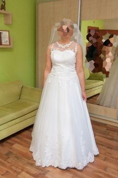 Witam, mam na sprzedaż koronkową suknię ślubną, żakiet i welon.