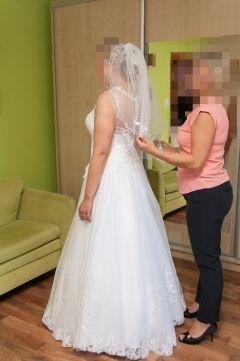 Witam. Mam do zaoferowania białą suknię ślubną, żakiet oraz welon według własnego projektu.
