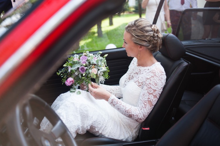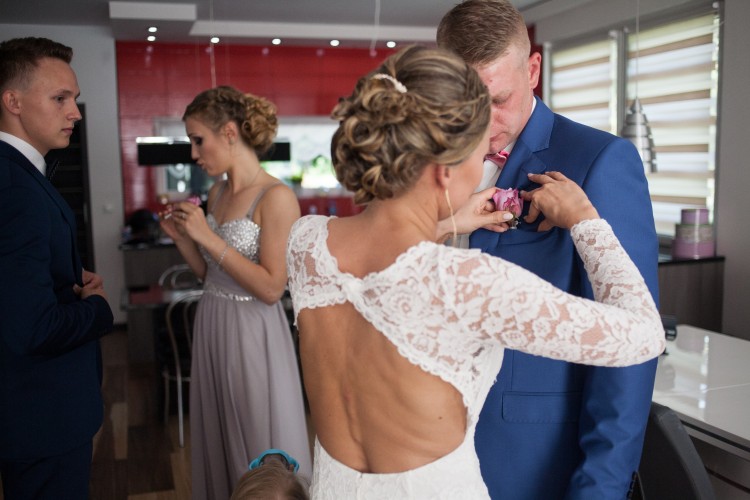 suknia ślubna z koronki koloru ivory z trenem- syrenka