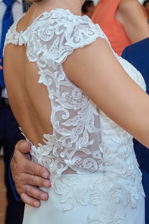 Suknia Ślubna z koronkowym dekoltem na plechach