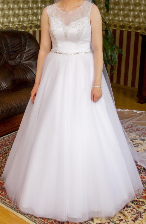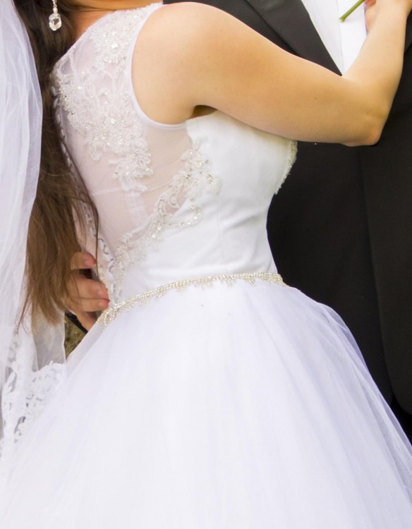 Biała suknia ślubna z kryształkami Swarovskiego