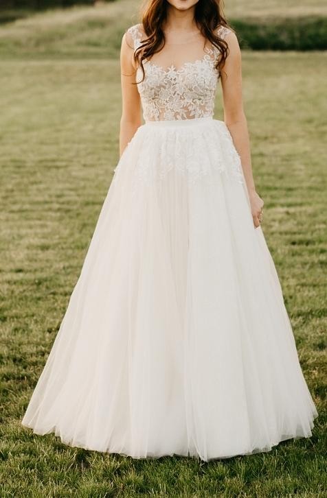 Suknia ślubna z modnymi koronkami, rozmiar 34