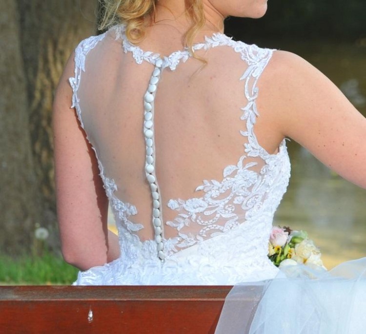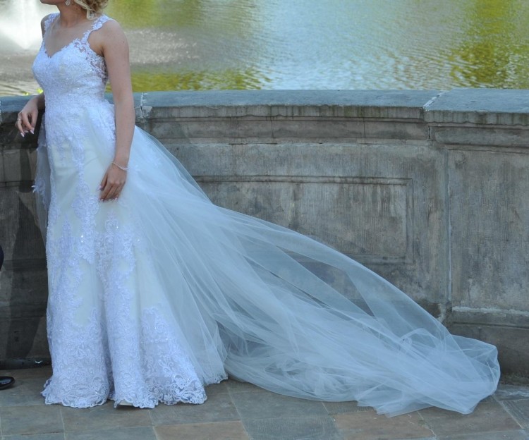 Suknia ślubna z odpinanym tiulowym trenem rozm. 34/36