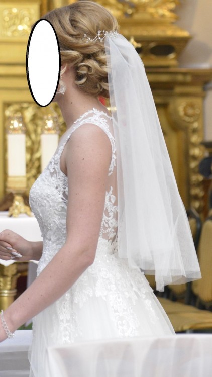Do sukni dołączam welon w kolorze sukni oraz ozdobę do włosów.