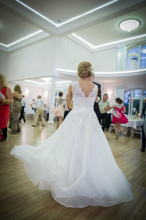 Mam do sprzedania przepiękną suknię ślubną zakupioną w salonie Diana w Rzeszowie. Jest to model Marika, przerobiony, z inną koronką. Góra gorset usztywniany z koronką, dół to jedwab z muślinem. Suknia jest lekka i wygodna. Wymiary sukni 88/68/88. Szyta na wzrost 165 cm + 5 cm obcas. Suknia w kolorze śmietankowym. Suknia wiązana z tyłu na tasiemki na gorsecie. Do sukni dołączam halkę z kołem oraz welon o długości 3 m. Suknia kosztowała ok 3000 zł. Koronka na ramiona jest tak naszyta by można było założyć biustonosz w kolorze cielistym.