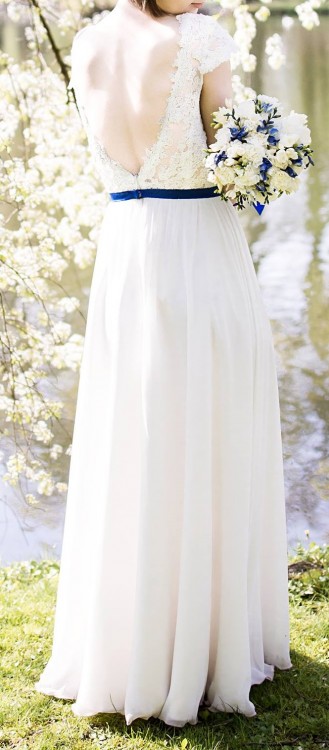Góra sukni z koronki z wszytymi miseczkami z ozdobnym pięknym wycięciem na plecach.