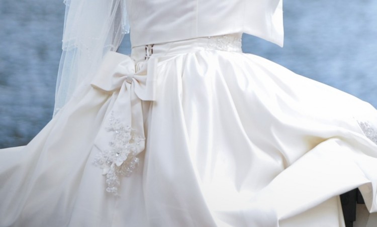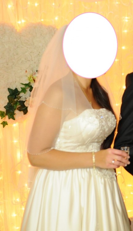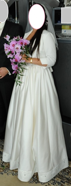 Suknia ślubna wysadzana kamieniami, litera A zakupiona w Anglii.