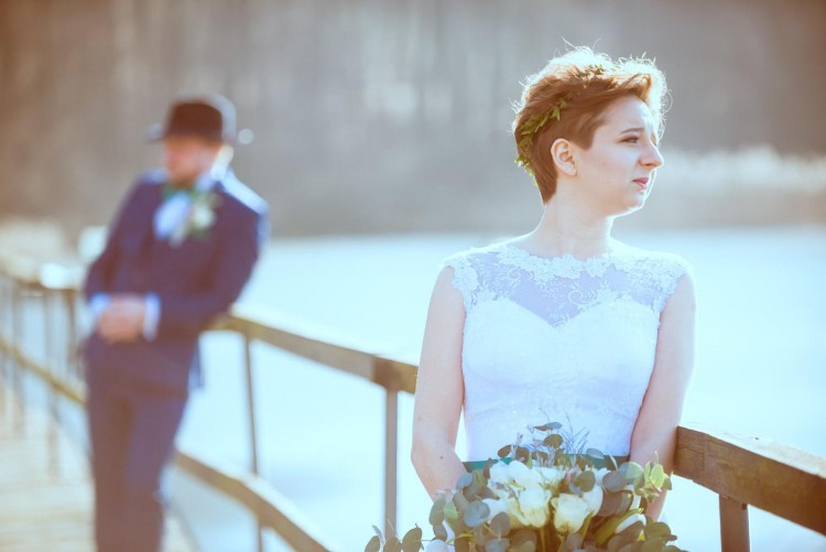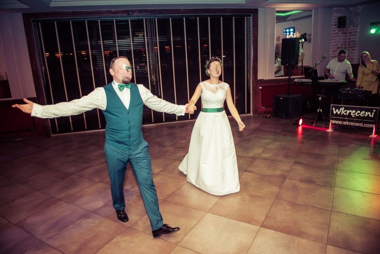 Suknia ślubna w rozmiarze 36/38. Idealna na panią, która ma 164 cm wzrostu. Suknia była noszona w kościele ze szpilkami 8 cm, na weselu z obuwiem płaskim. Sukienka ma z tyłu sznureczki do podwiązania delikatnego trenu. Dół wykonany jest z gładkiego materiału, gorset na górze to koronka ze sztywnym spodem, dzięki któremu nie trzeba nosić biustonosza, a wszystko ładnie się układa. Plecy wycięte. Szmaragdowy pasek można zastąpić wąskim białym paseczkiem, który był w oryginale (dołączę go przy sprzedaży), lub też jakimś innym wg upodobania panny młodej.