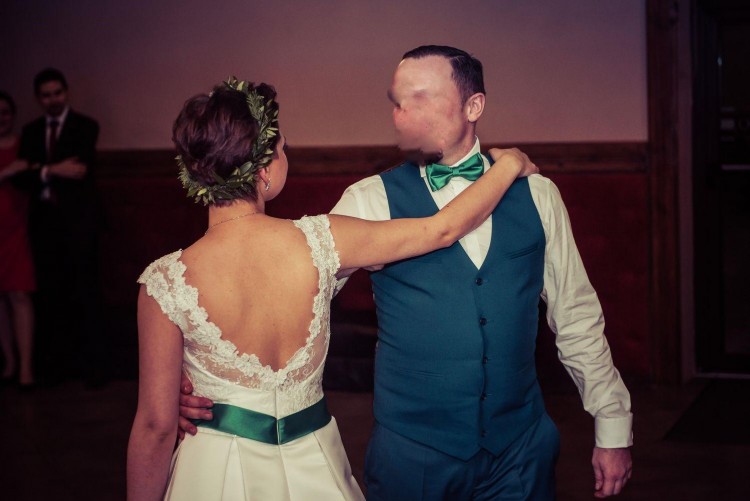 Suknia ślubna ze szmaragdowym pasem satynowy dół